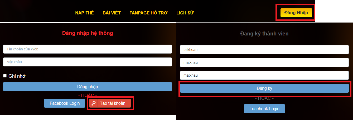 Tài khoản - mật khẩu phải viết liền nhau - không dấu - không cách