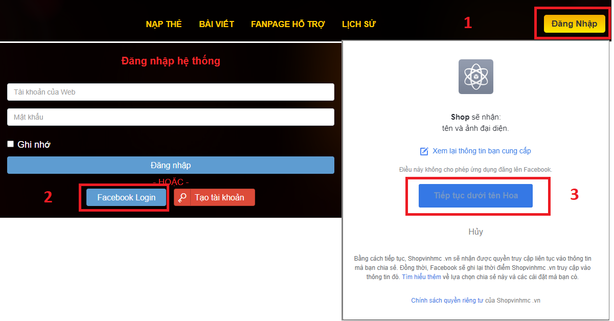 ĐĂNG NHẬP TÀI KHOẢN BẰNG FACEBOOK