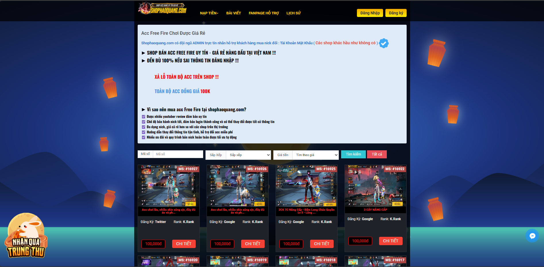 Ngoài ra, nếu bạn không có nhiều thời gian, có thể mua acc Free Fire tại shophaoquang.com có sẵn skin nâng cấp, nhưng cần lưu ý phần bảo mật và kiểm tra log trước khi giao dịch.